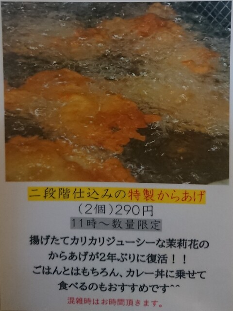 急遽決まった臨時営業だったみたいなので、メニューの種類は少し減らして、営業時間も通常はAM11:30~13:30の2時間ですが、11:30~13:00の1時間半の営業になっていました。