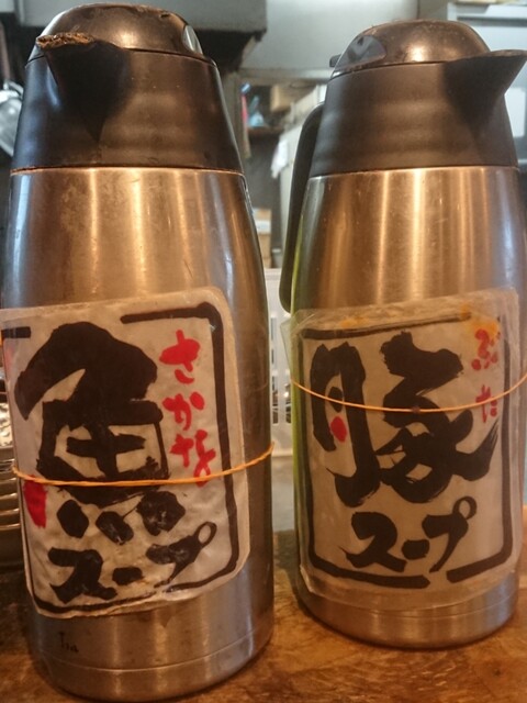 麺を食べ終えてスープ割をお願いすると、なんとスープ割は豚と魚の2種類のスープから選択が出来ます。