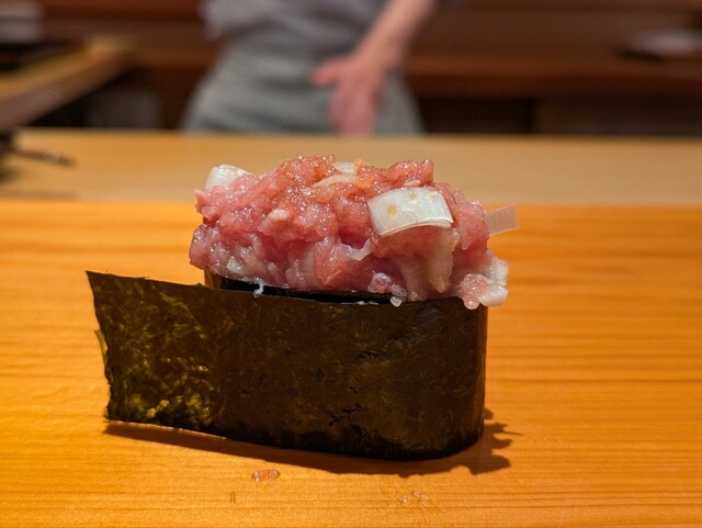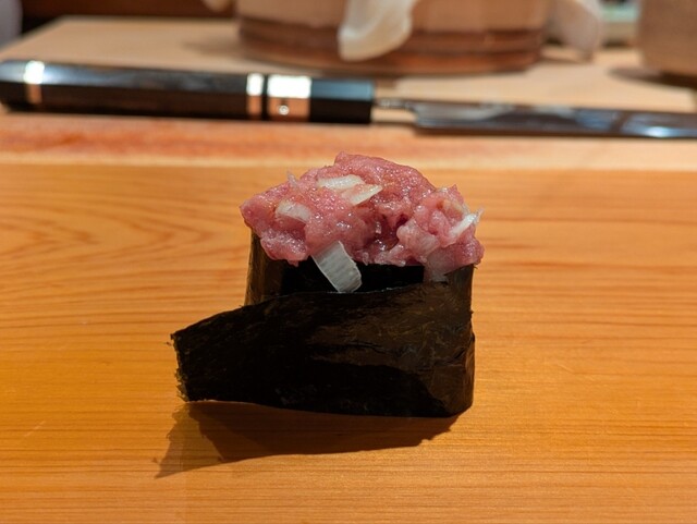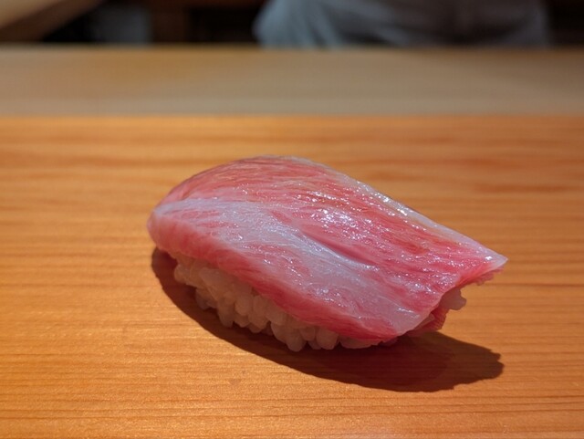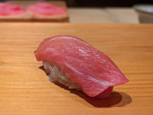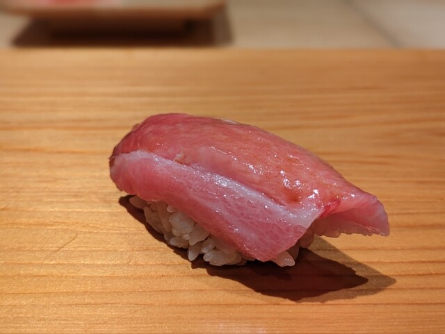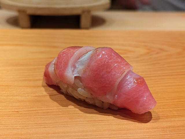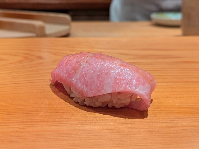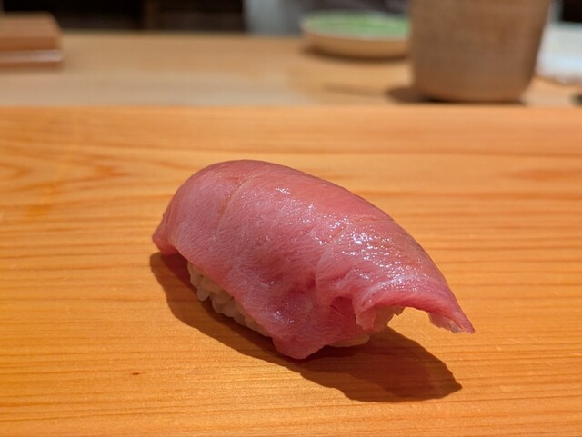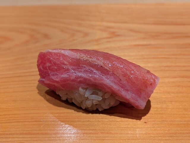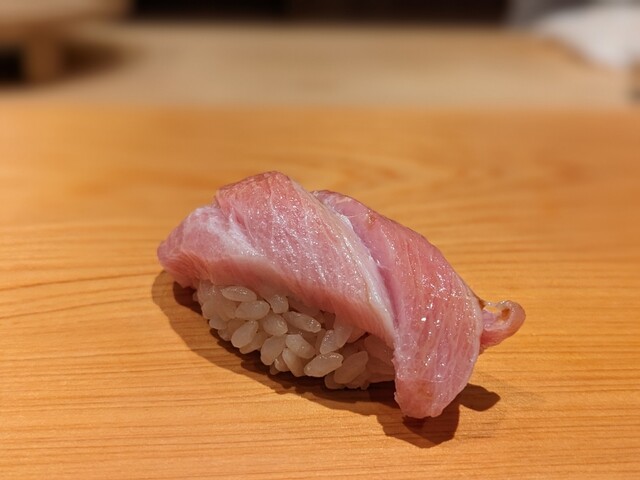 赤身と同じ個体。恐ろしく柔かく、夏のマグロとは思えないくらいに脂が甘い。めちゃうま!
