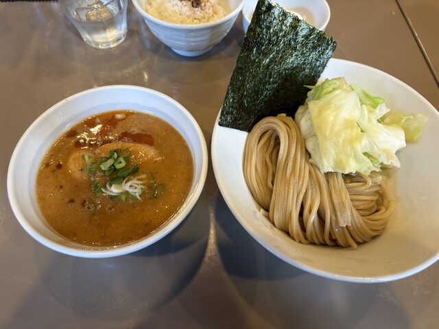 エビ味噌や蟹味噌の旨味がほのかに香り、スパイスと合わさることで独特の深みが生まれている。カレーを麺やライスに絡めて食べると、普段の海老つけ麺とはまた違う異国感ある味わいが楽しめた。