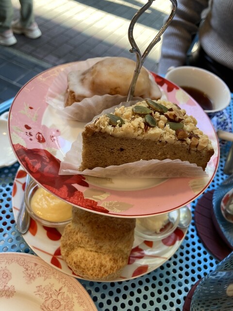 こちらはプレーンスコーンに、英老舗茶商テトリーのオリジナルティーがポットで、さらにケーキがセットになります。