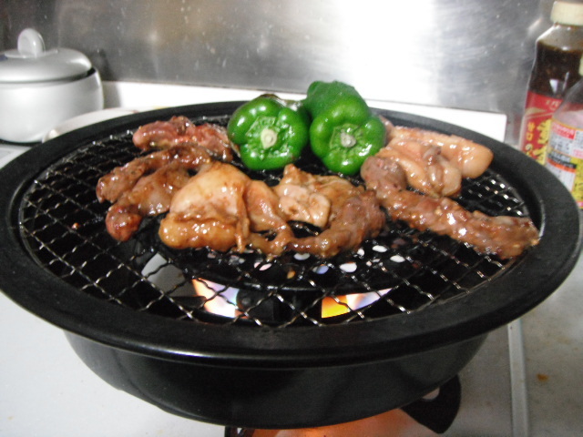 換気扇回してコンロにカセット用の焼き網プレートを置いて焼いたりました。