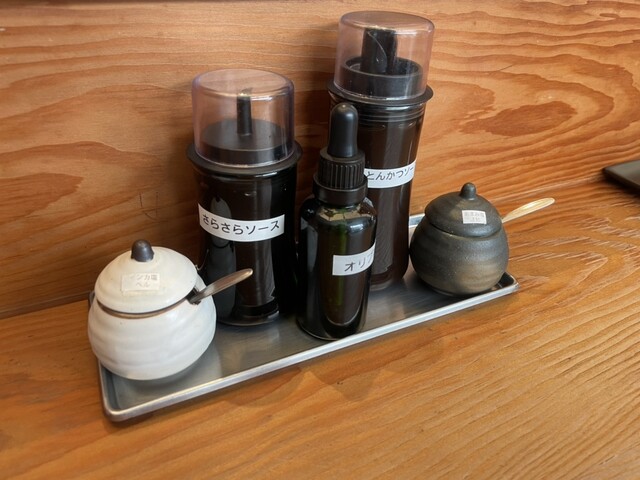 卓上には調味料が置いてあり、何もつけなくても美味しいけどやっぱり何かつけて食べちゃいます。