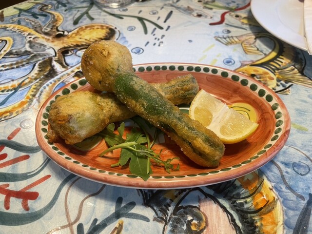 何年も前に花ズッキーニのフリットを食べたことがあり、それが美味しかった記憶なので、オカピートでも。