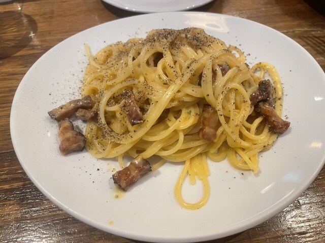 濃厚カルボナーラは、これもよくある生クリームのようなカルボナーラソースに浸かりまくったやつではなく、本場で食べるようなカルボナーラで、黒胡椒もしっかり効いていて、ベーコンの旨味と合わさり、すごく美味しかった!