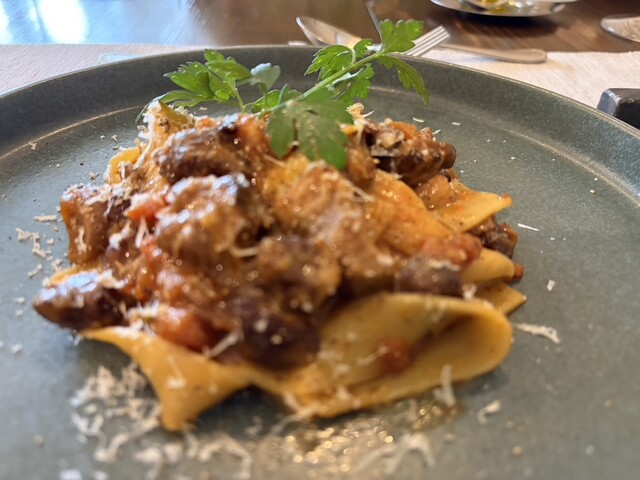 主人はラグーのよもぎパスタ。