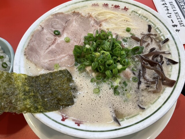 泡系豚骨ラーメン カタメ 肉盛ごはん