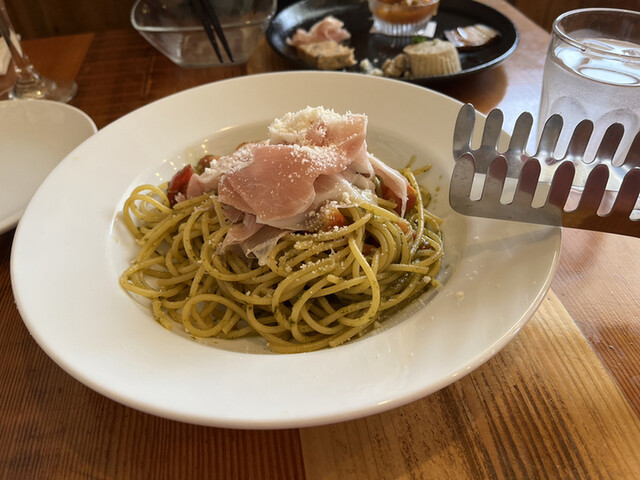 今日はそれぞれピザを頼んで、追加でパスタと豚肉の燻製を注文。