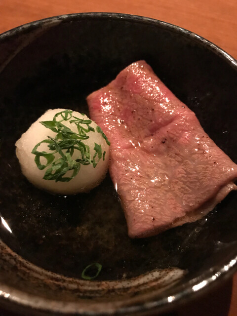 脂が強めのミスジを、大根おろしをとかした出汁にからめてあっさりといただきます。