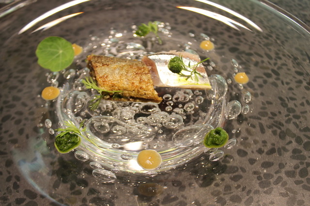 つぎはサーモン!秋の味覚のいろいろな種類のキノコがふんだんに使われており、キノコの旨味が凝縮した贅沢なソースです。山の幸と海の幸のハーモニーが素敵でした。