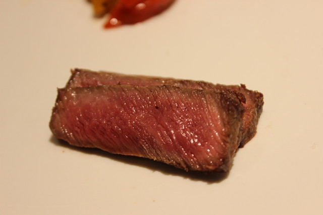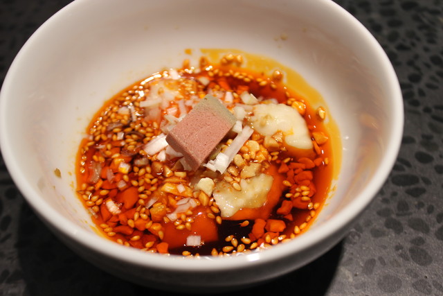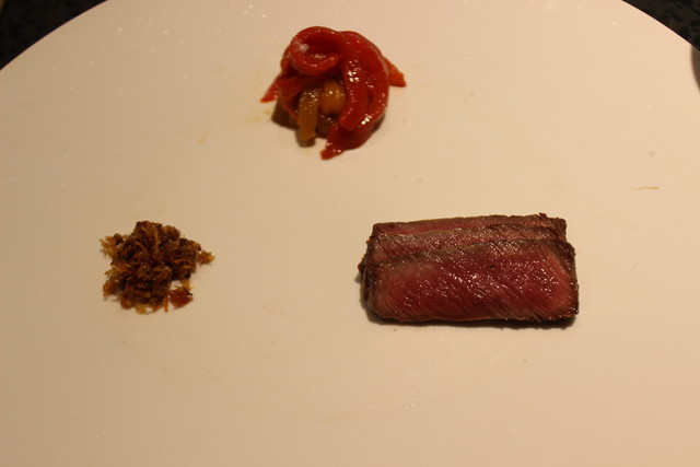 上品な盛り付けです。 自家製のXO醬と一緒にミスジをいただきます。