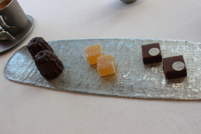 食前酒、前菜4品、魚料理、肉料理、プレセデール、セデール、お茶菓子コーヒーの15000円のコースです。夜のコースよりもお得な感じになっているみたいです。