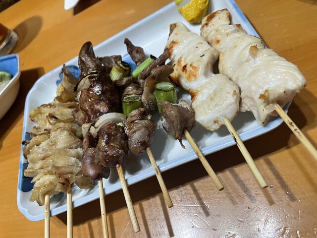 やきとり盛り合わせはシロ、レバー、皮、砂肝で塩にしたんですが、胸肉のシロがクセなく好きなやつ、タレも頼みましたが塩がおすすめ(^ω^)