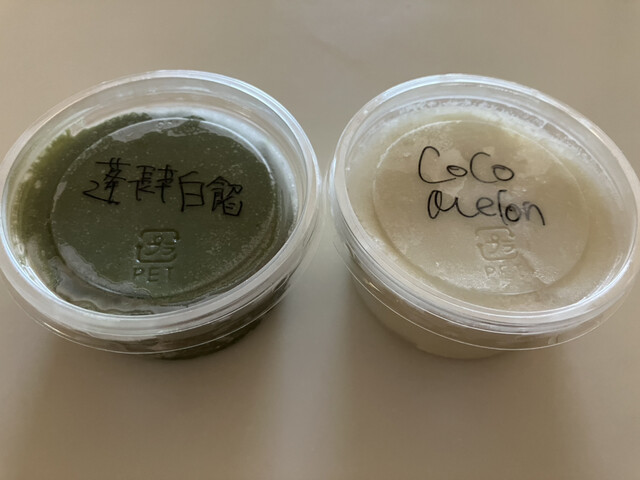 気温も高くなってきたので、今回はアイスも持ち帰りました。山芋を使った蓬白餡とココナッツメロン、他にも様々な組み合わせのフレイバーがあり、季節によってもラインナップが異なります。アイスとしては小ぶりなので割高感はありますが、巷のジェラード屋さんを超える深い味わいと素材チョイスのスマートさに驚きます。