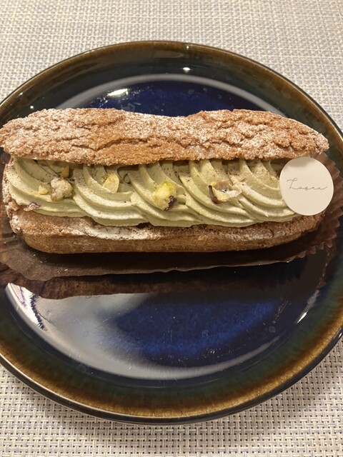 エクレールは、濃いピスタチオクリームのボリュームに圧倒されます。その後ろにはショコラカスタードにフランボワーズコンフィがアクセントになり、全体のまとまりが素晴らしいです。エクレアで680円はちょっと高いと思うかもしれませんが、期待を上回る価値ある商品です。