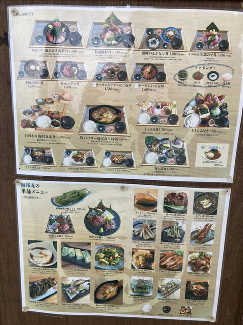 色々な店がある中で、ちゃんとした海鮮料理がいただけそうな海邦丸を見つけましたので、こちらでテイクアウトすることにしました。