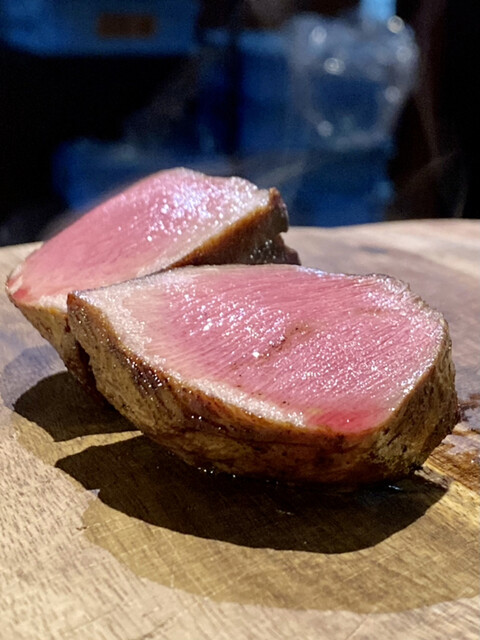 1つは角切りレアタン、1つはタタキとして用意していただきました。