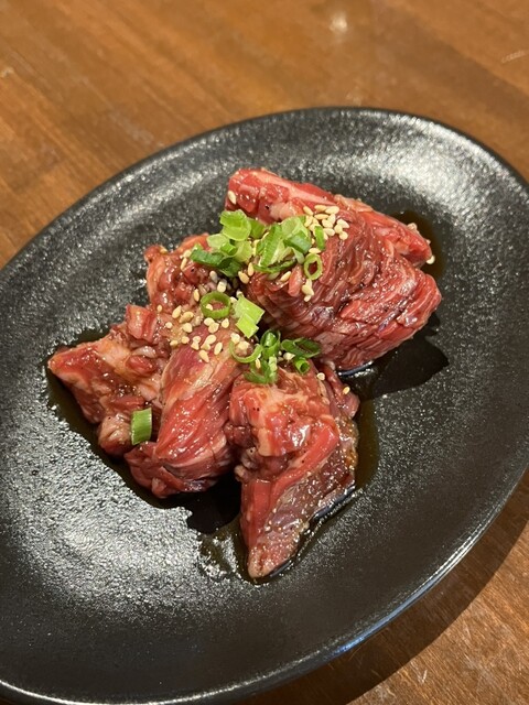ニンニクと一緒に香ばしく焼かれたお肉は、口に入れた瞬間に香りが広がります。