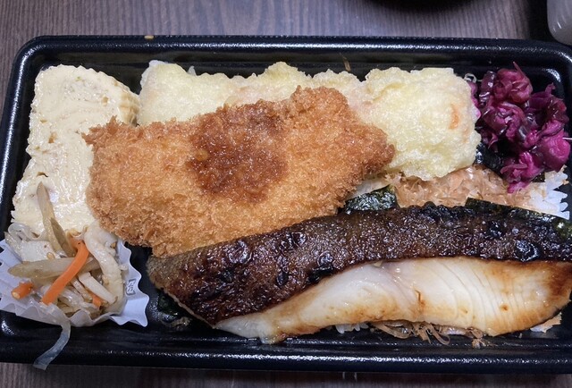 お弁当はのり弁当の上に銀たら、ちくわ天、白身フライ、卵焼きとどれもしっかりした味で美味しかったです。
