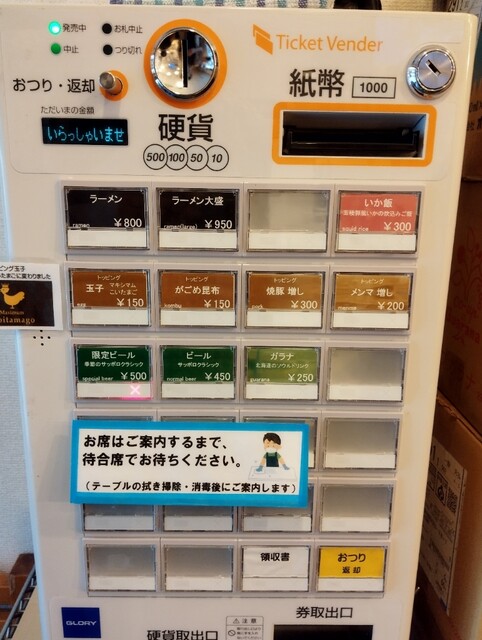 食券機で食券購入してから着席です。