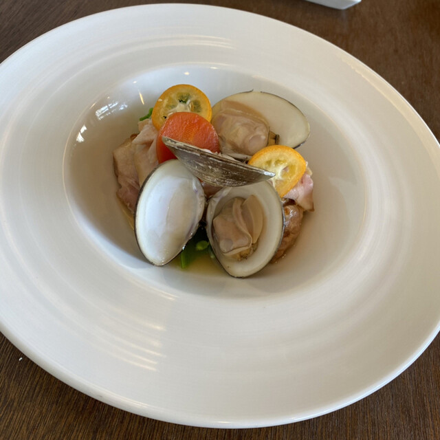 メインは鶏の軽い煮込みだったけど、お肉が柔らかくて食べやすい...蛤と一緒に煮込まれてて旨味が出たスープまでいただきました( º﹃º )