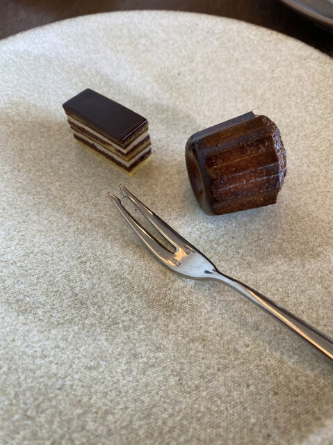 バスクチーズケーキが中身トロふわで、もうデザートだけでカフェ使いしたい位!カヌレもお酒の風味しっかりで好きなタイプだしミニチョコケーキもミニじゃなくて大きいのが食べたいくらい笑
