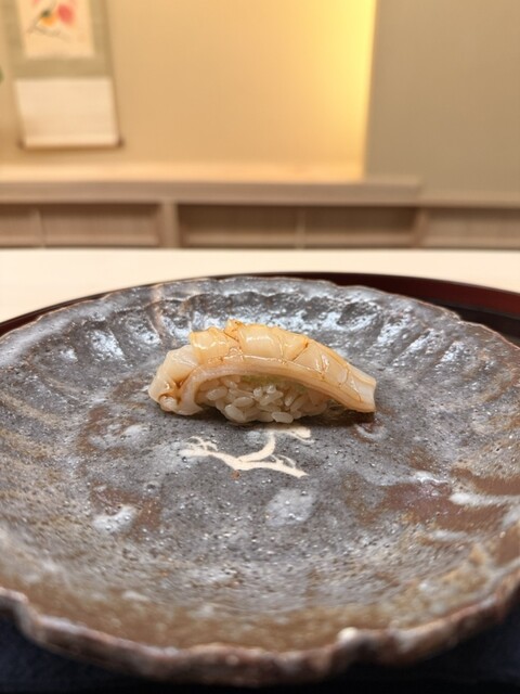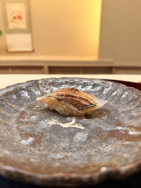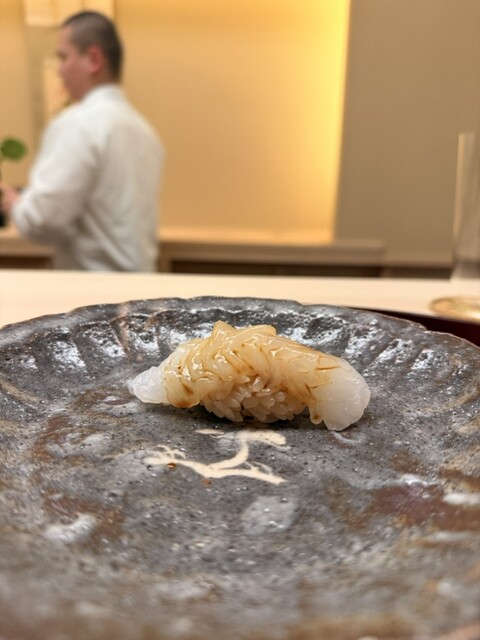 握りがまた素晴らしい。まずシャリがいい。酢の角を感じさせず、ほんのり温かく、ほろりとほどける。白身の包丁仕事は繊細で、海老の火入れは完璧。脂をまとったネタは“重たさ”ではなく“香りの余韻”で食べさせるタイプ。特に赤むつの焼きの入り方、皮目の香ばしさ、脂の抜き方は若手の域を超えている。コース終盤に「追加どうされますか?」と聞かれ、結果として追加可能なもの全て(10貫ほど)お願いしたが、どの一貫も雑味のないクリアな仕事で、追加した自分を褒めたくなるほど満足度が高かった。