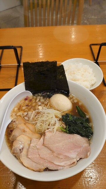 今回は『特製貝出汁醤油らぁ麺』1,050円と『小ライス』100円を注文。