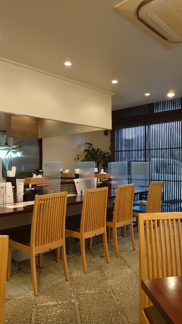 新型コロナウイルス対策として、テーブル席・カウンター席にはアクリル板で仕切りがされています。