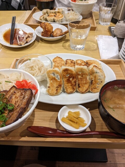 餃子定食+定食ライスを炙りチャーシュー丼(小)に変更