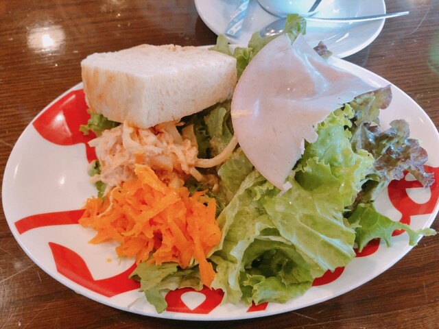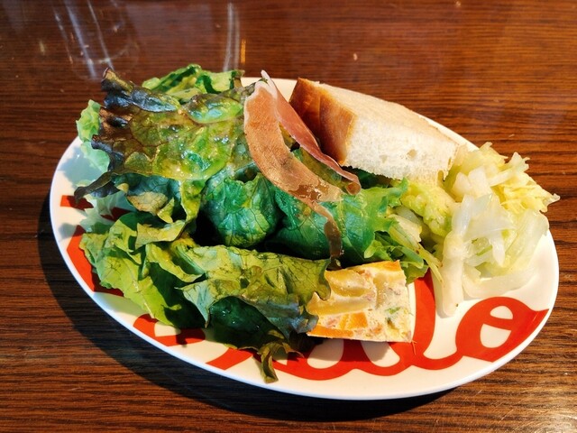 最初に来たパンをすこし取っておいて、最後にサラダをのせてオープンサンドみたいにして食べました。