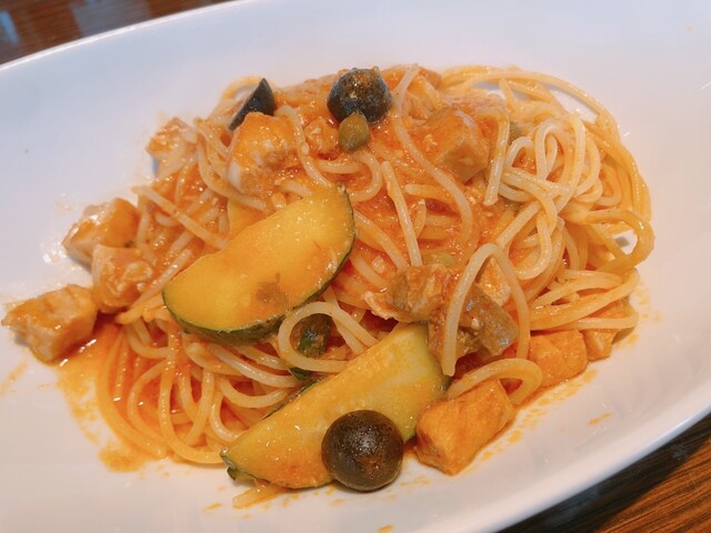 鶏サルシッチャとゴボウのチーズバターソーススパゲッティ