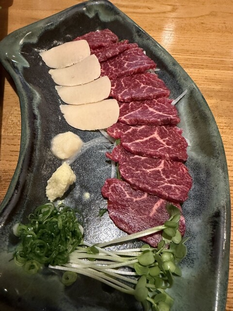 お勧めの刺身やお料理に加え、信州に来たら絶対食べたくなる馬刺しを注文しました。白州のハイボールを楽しみながら美味しく頂きました。白州のボトルが比較的安いのが嬉しいですね。