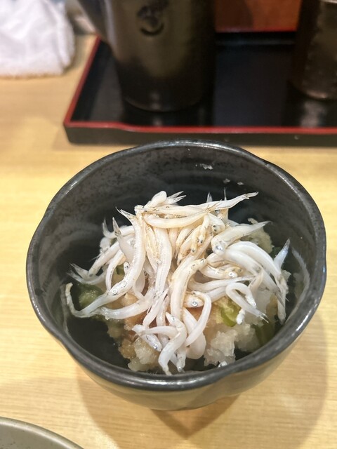 これも毎回楽しみなんですが、今回は『しらす』でした。しらすも美味しいですが、個人的には赤ナマコか白子の時が当たり笑