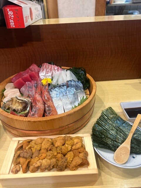 大将が市場に買い付けに行ってるようです。魚にうるさい大将なので店も良い魚を出してくるとか。