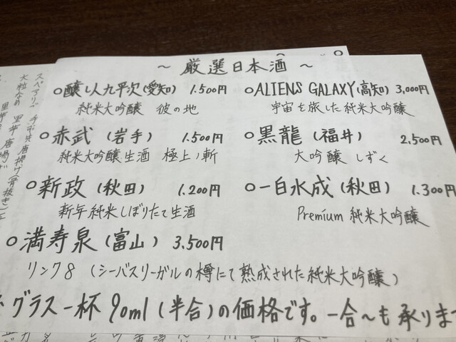 日本酒のメニューも確実に写真を撮ってるのですが、ないとな…