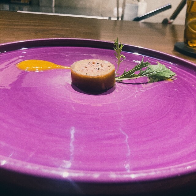 フォアグラに対して特別な仕込みなどをおこなってるのかと思ったのですがフォアグラ自体は軽く火を通してから奈良漬とあわせてるとのこと。