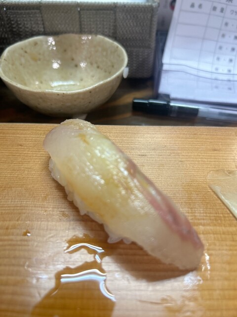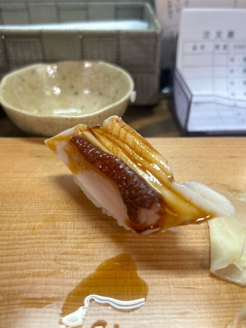 やや強めの酢が効いておりふっくら柔らかいシャリ。そこに淡白なタイ。酢飯の酢のアクセントが白身も美味しくします。明らかに赤酢のシャリとかよりも白身に関してはここのシャリの方があってる気がします。