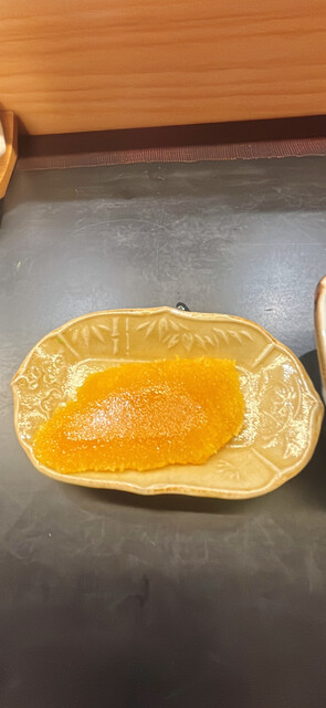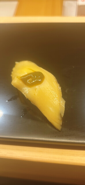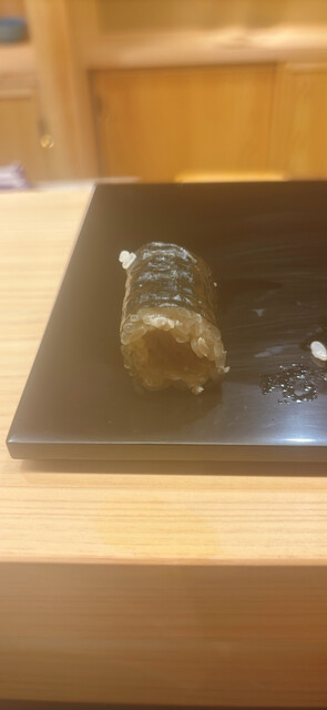 長時間蒸した鮑を肝と。一品物も美味しいですが、寿司でも最高!追加できるならしたいメニュー。
