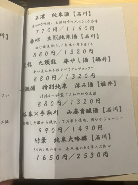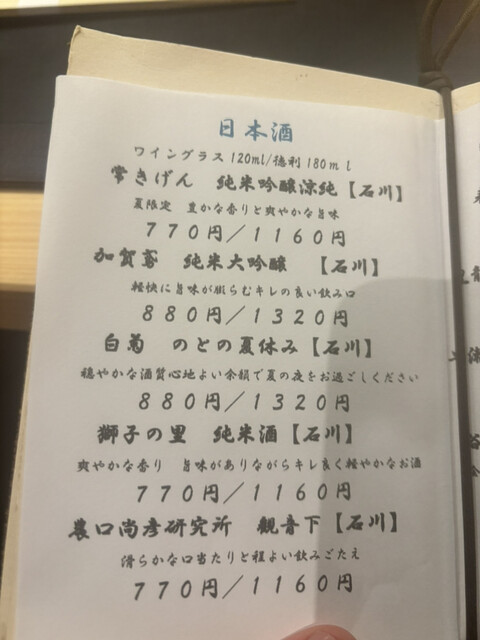 店主と女将さんの接客も抜群!そして石川県の日本酒も堪能できる!味もコスパも良い!