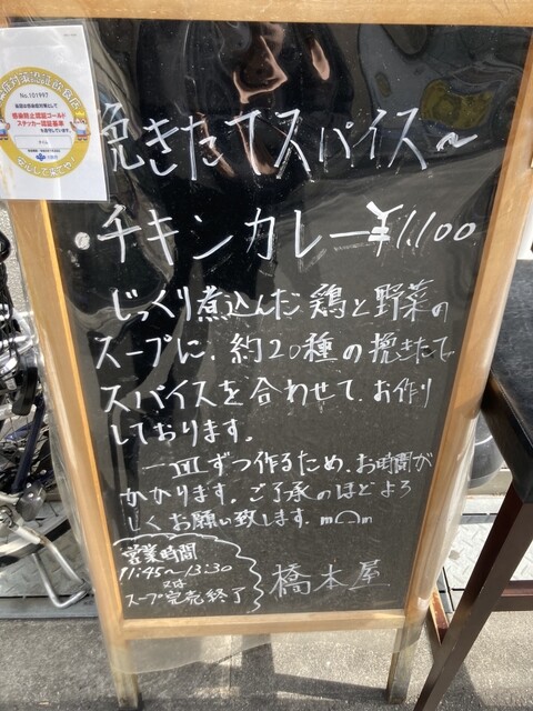 芳醇でスパイスが効きながらも濃厚な味だけどまろやか。スパイスカレーはそこまでの自分ですがここのカレーはスパイスカレーでも欧風カレーとも違う。橋本屋のカレー。
