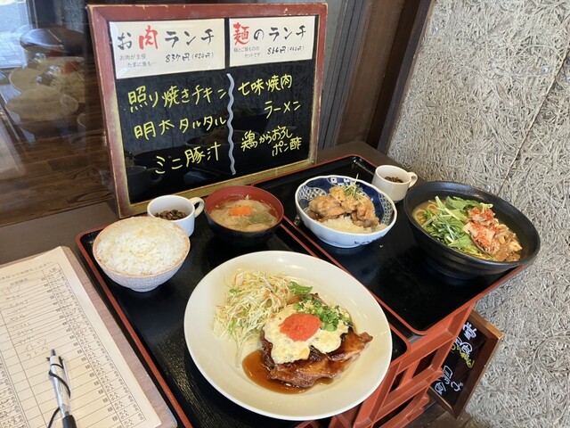 麺のランチ七味焼肉ラーメン鶏からおろしポン酢を注文✨