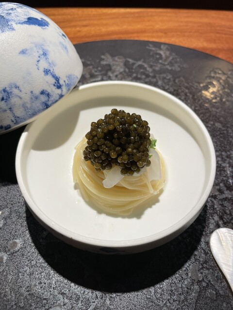 キャビアの塩味と白海老のねっとり感が最高