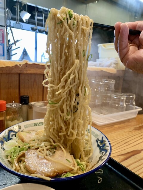 啜りごこち最高の中太ちぢれ麺をリフトUP⤴️