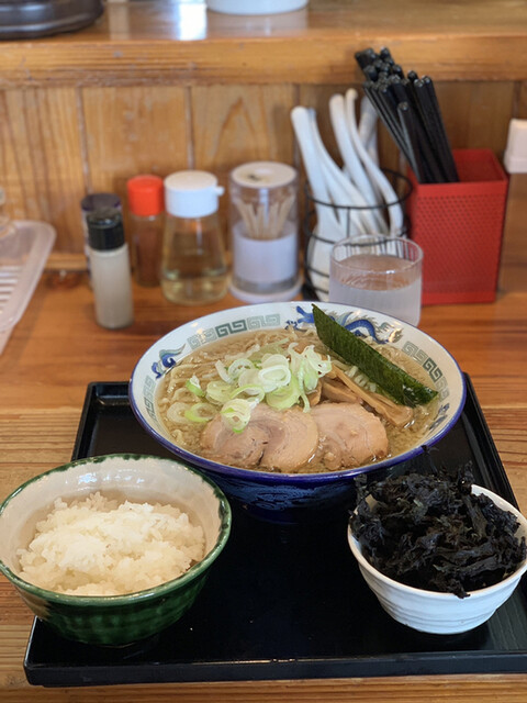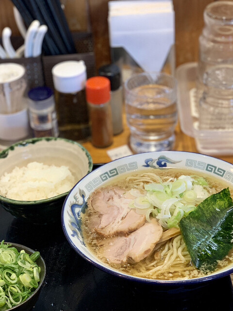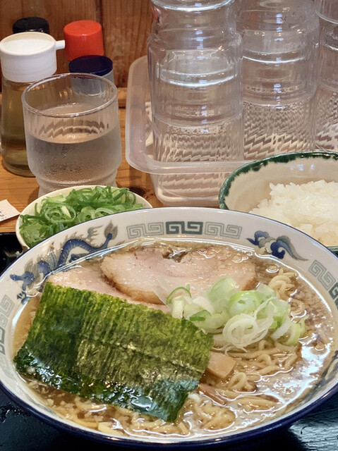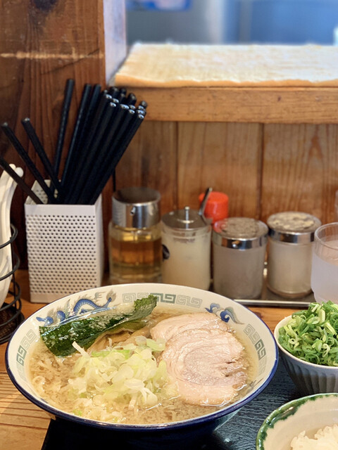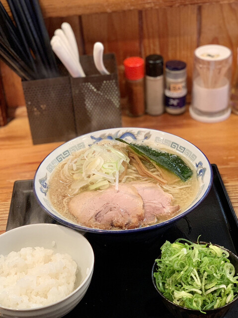 朝ラー(醤油)普通に九条ねぎトッピングご飯半分