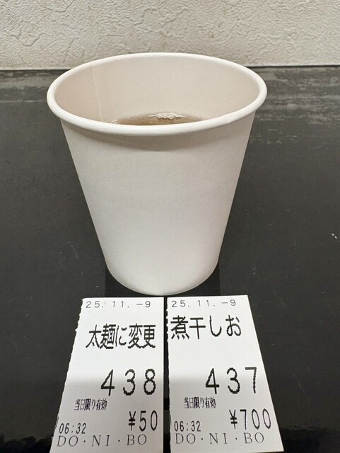 • 朝ラー600円を太麺に変更50円それからニボプラス50円