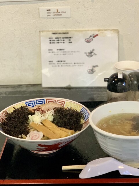 今朝は、煮干し油そばに岩海苔トッピング✨✨✨