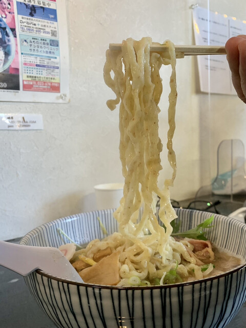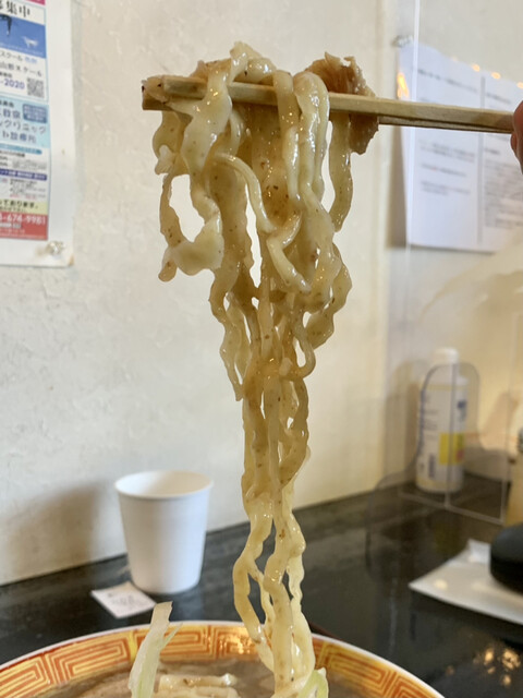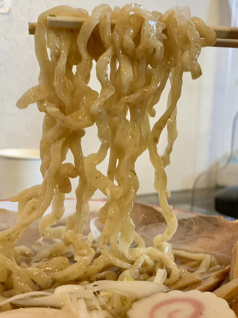 かた茹でのちぢれ太麺をリフトUP⤴️
