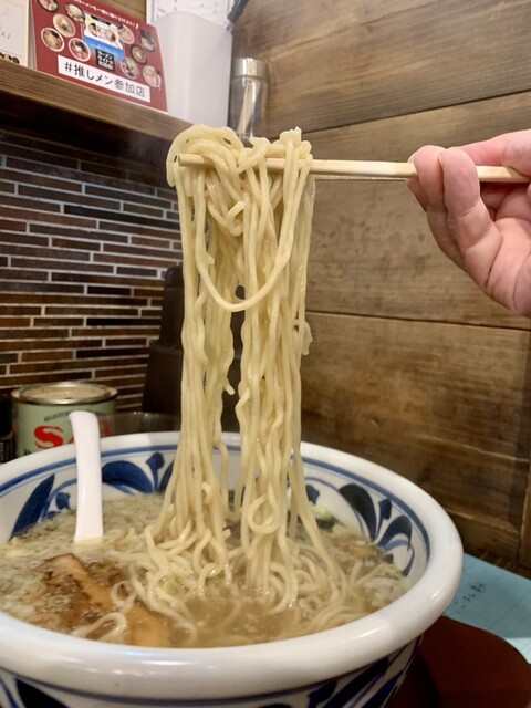 ツルツルの中太ちぢれ麺をリフトUP⤴️