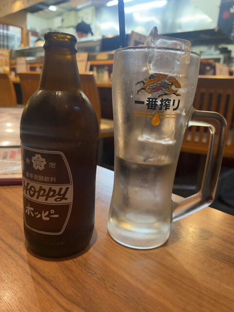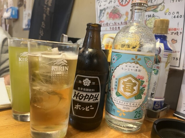 前回来た時にキンミヤボトルを入れていたのでホッピー外と緑茶。